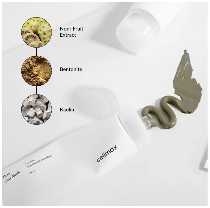 La mascarilla The Real Noni Refresh Clay Mask de Celimax es una poderosa pero delicada mascarilla facial con arcilla y minerales naturales que purifica la piel en profundidad. Su fórmula ayuda a eliminar impurezas, células muertas y exceso de grasa, al mismo tiempo que proporciona hidratación a las capas internas de la piel, evitando la sensación de sequedad o tirantez.