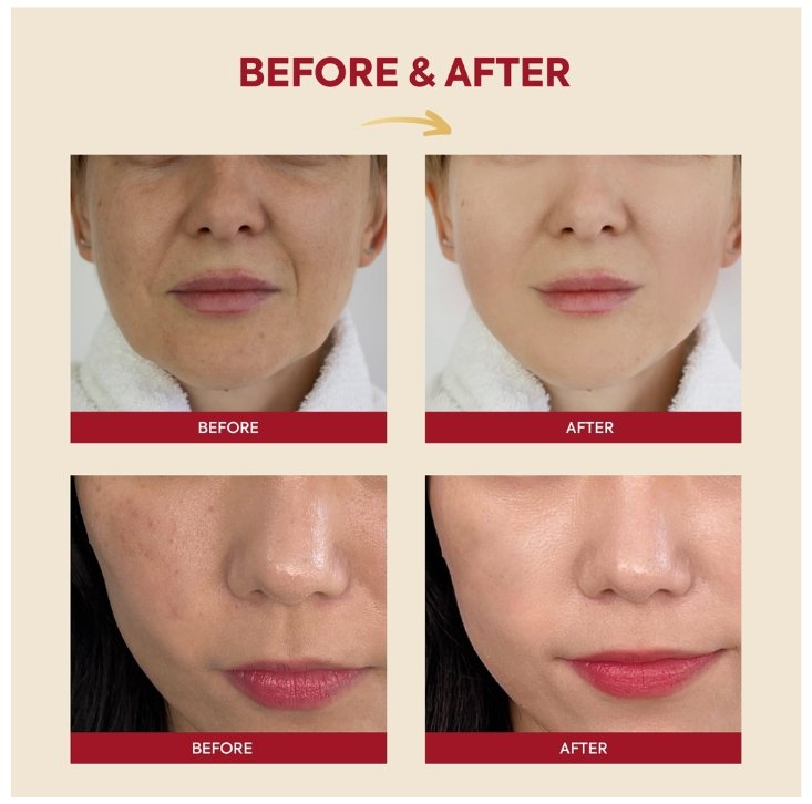 La baba de caracol actúa como un regenerador intensivo que repara los tejidos, reduce cicatrices de acné y fina líneas de expresión, mientras que el extracto de arroz aporta un brillo natural al rostro, ayudando a aclarar manchas oscuras, emparejar el tono de piel y darle una textura sedosa 🌸